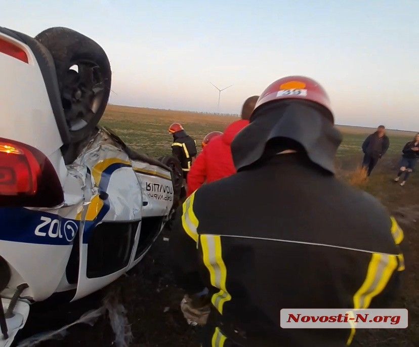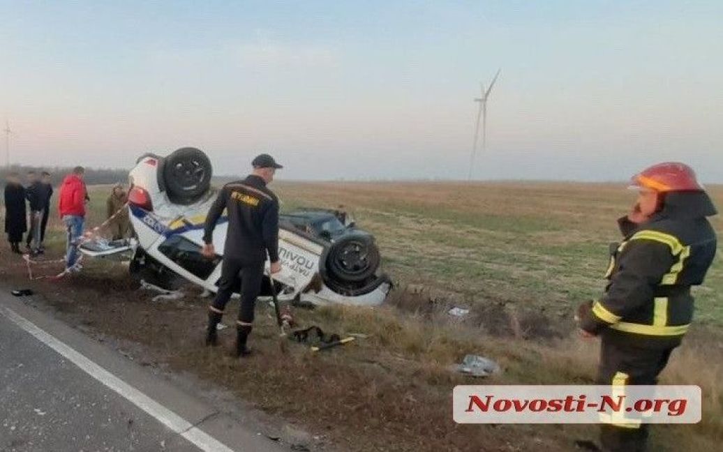 Після зіткнення авто поліцейських вилетіли на узбіччя, де перевернулося на дах.