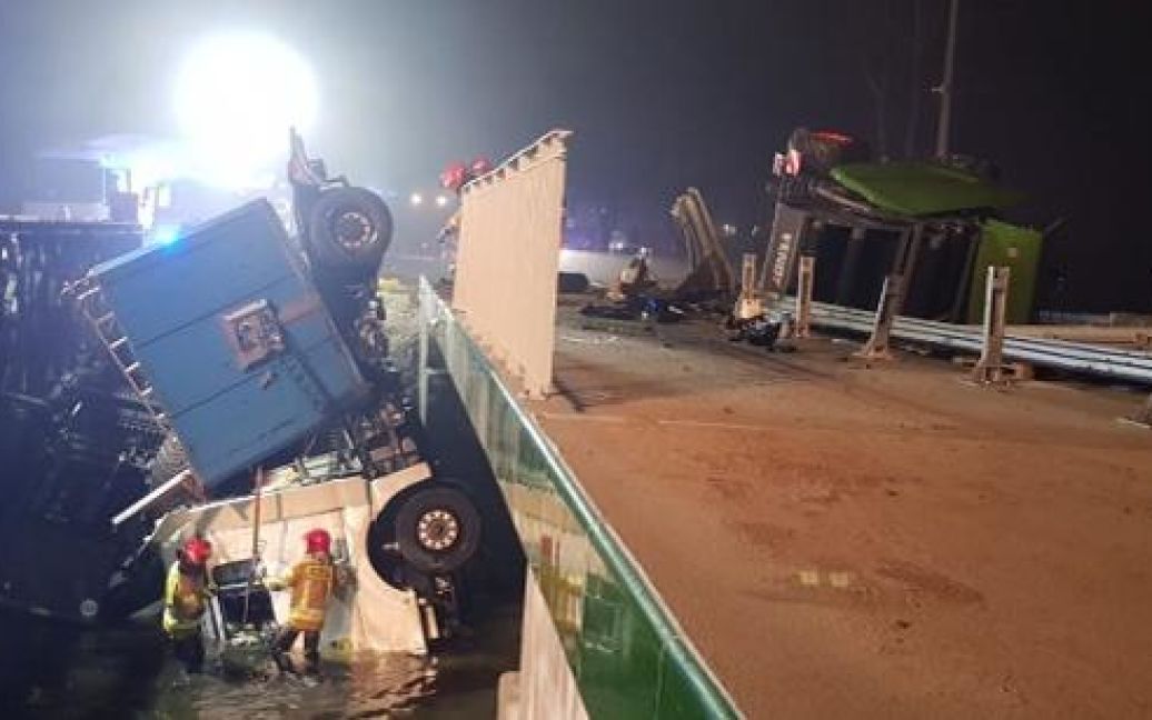У Польщі у містечку Котово громадянин України потрапив у ДТП на вантажівці. Він злетів з дороги на місці будівництва мосту і частково впало в воду.