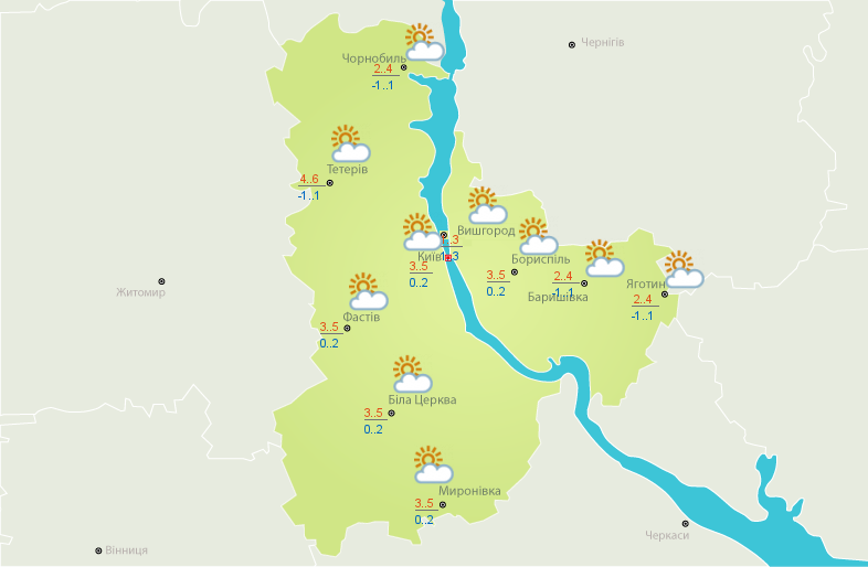 У столиці завтра також очікується мінлива хмарність без опадів. Вдень повітря прогріється від + 3 до + 5. Температура вночі становитиме 0 +2.