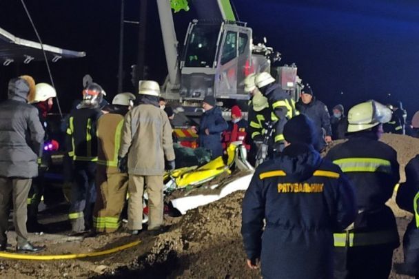 Видання newsroom.kh.ua повідомило, що рятувальники уже підняли вантажівку із розтрощеного таксі. Для цього вони спочатку прибрали розсипаний щебінь та за допомогою автокрана підняли металеву конструкцію.