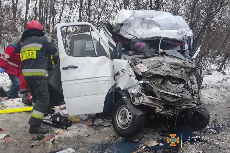 Жахлива аварія під Черніговом сталася вранці 7 грудня. За попередніми даними, водій фури не впорався з керуванням на слизькій дорозі й машину винесло на зустрічну смугу, де вона зіткнулася з маршруткою.