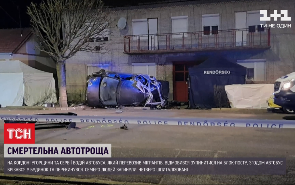 У поліції розповідають, автобус із сербськими номерами відмовився зупинитися на прикордонному блок-посту для перевірки, і на швидкості врізався у будинок й перекинувся. Усі пасажири у салоні були мігрантами.