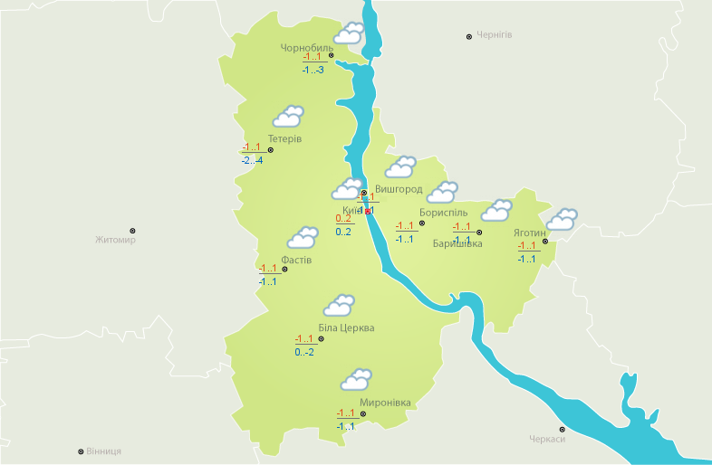 Температура повітря в Києві вночі становитиме від 0 до + 2, а вдень 0 +2.