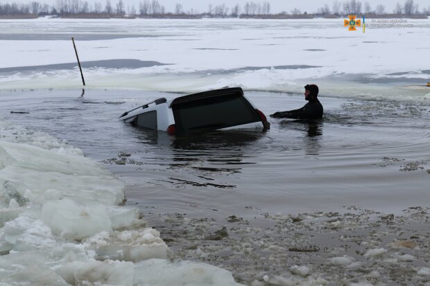 Головне управління ДСНС поділилося історією про українців, які провалилися під лід на машині