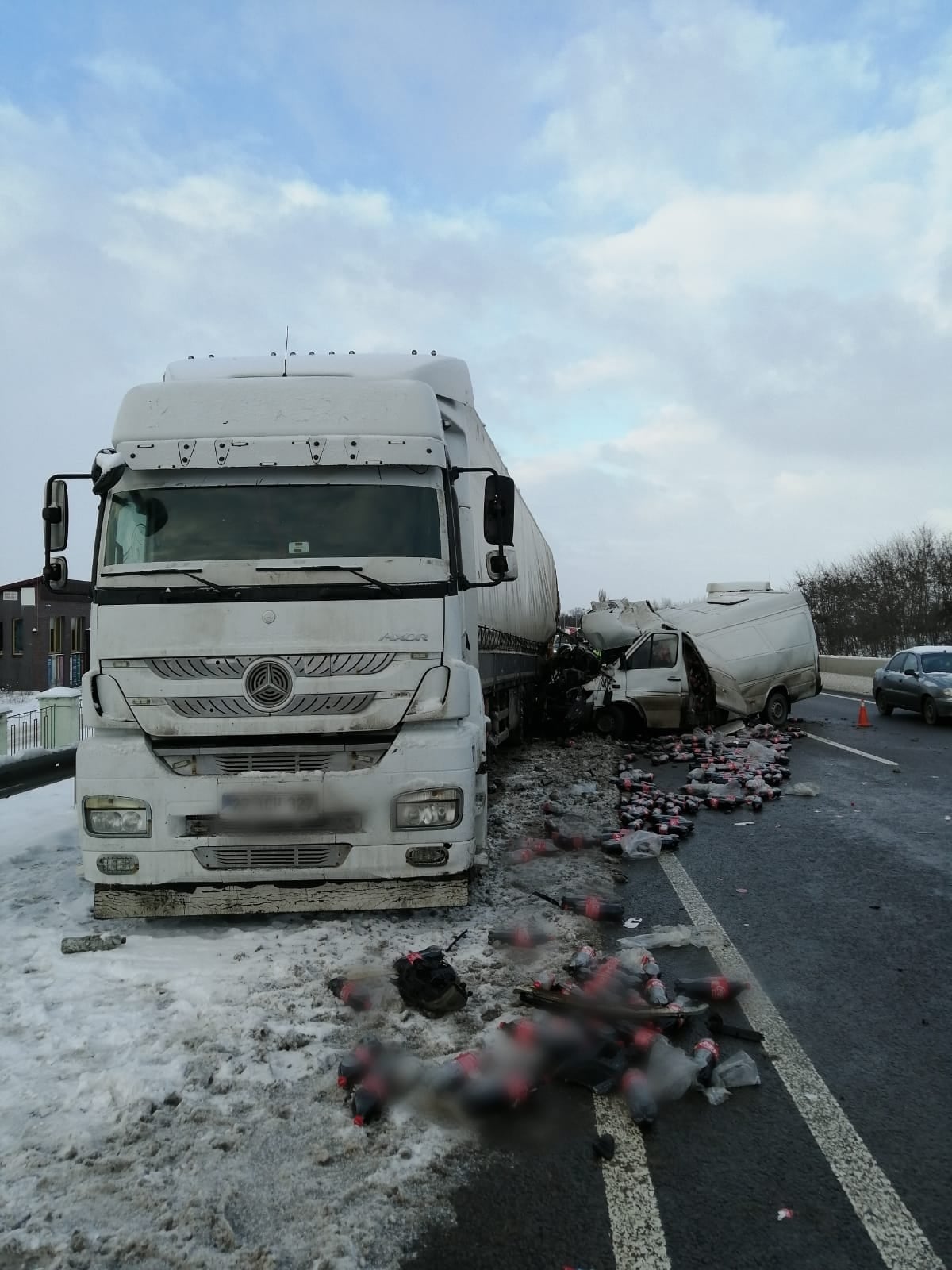 За попередніми даними, 29-річний водій автомобіля Mercedes Sprinter не впорався з керуванням і врізався у вантажівку, що стояла на узбіччі. Водія мікроавтобуса із травмою голови госпіталізували до Білоцерківської міської лікарні №2.