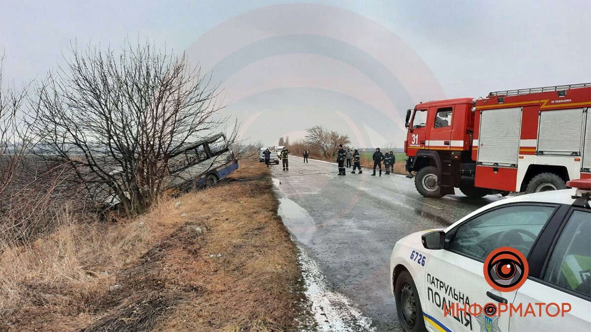 На трасі на Дніпропетровщині сталася дорожньо-транспортна пригода за участю легковика та рейсового автобуса. Внаслідок аварії обидва транспортні засоби загорілися.