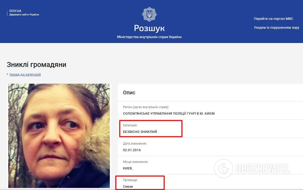 У 2016 році Оксані Сивак було 43 роки, жінка нібито вийшла з дому 2 січня та зникла. У жовтні 2016 року Оксану Сивак визнали зниклою безвісти.