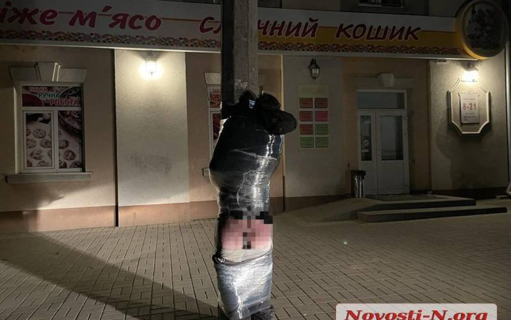 У соцмережах очевидці повідомляють, що у Миколаєві місцеві жителі самотужки спіймали мародера, прив’язали його до стовпа плівкою і приспустили йому штани і білизну.