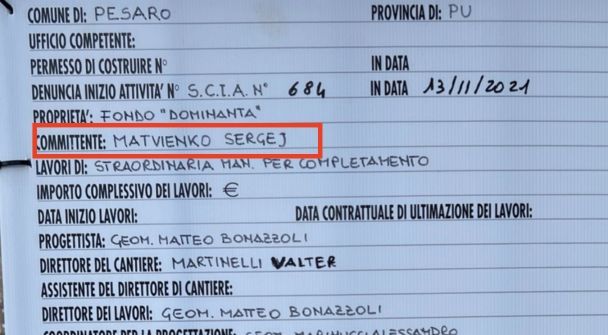“Матвієнко дуже хоче, щоб ніхто не знав, що це її італійська власність, але вона також хоче, щоб її відремонтували. Прямо біля воріт вілли ми знайшли ім’я замовника: це Сергій Матвієнко, її син. Не дивно, що він також розбагатів на пограбуванні росіян”, – додала Марія Певчих.