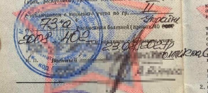 Пред’явник військового квитка з відповідним записом їхав у Молдову. У документі 53-річного чоловіка значилося, що він знятий з військового обліку у 2009 році, але причина зняття була датована минулим роком.