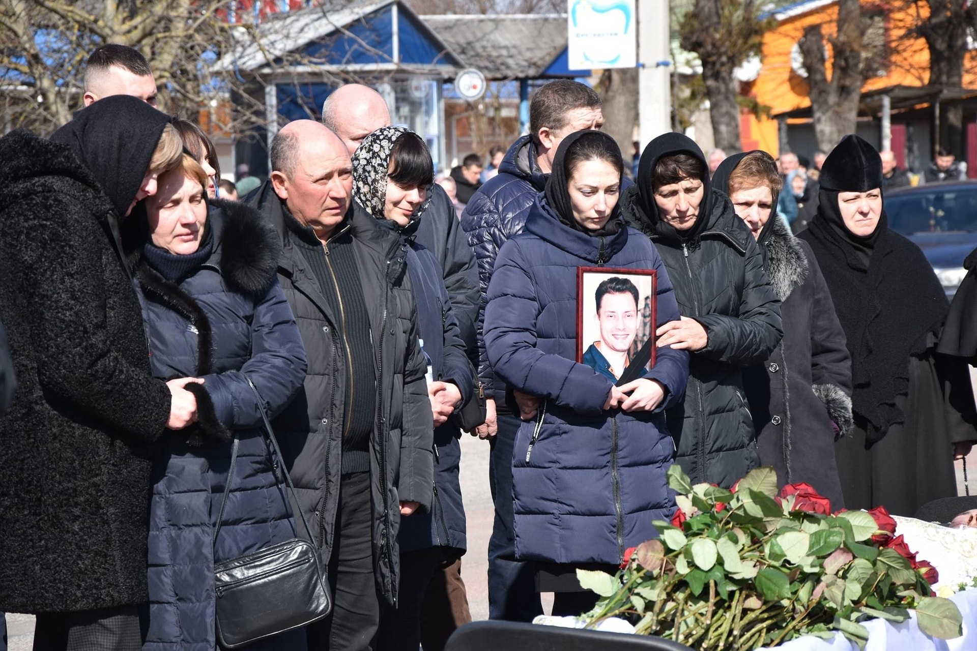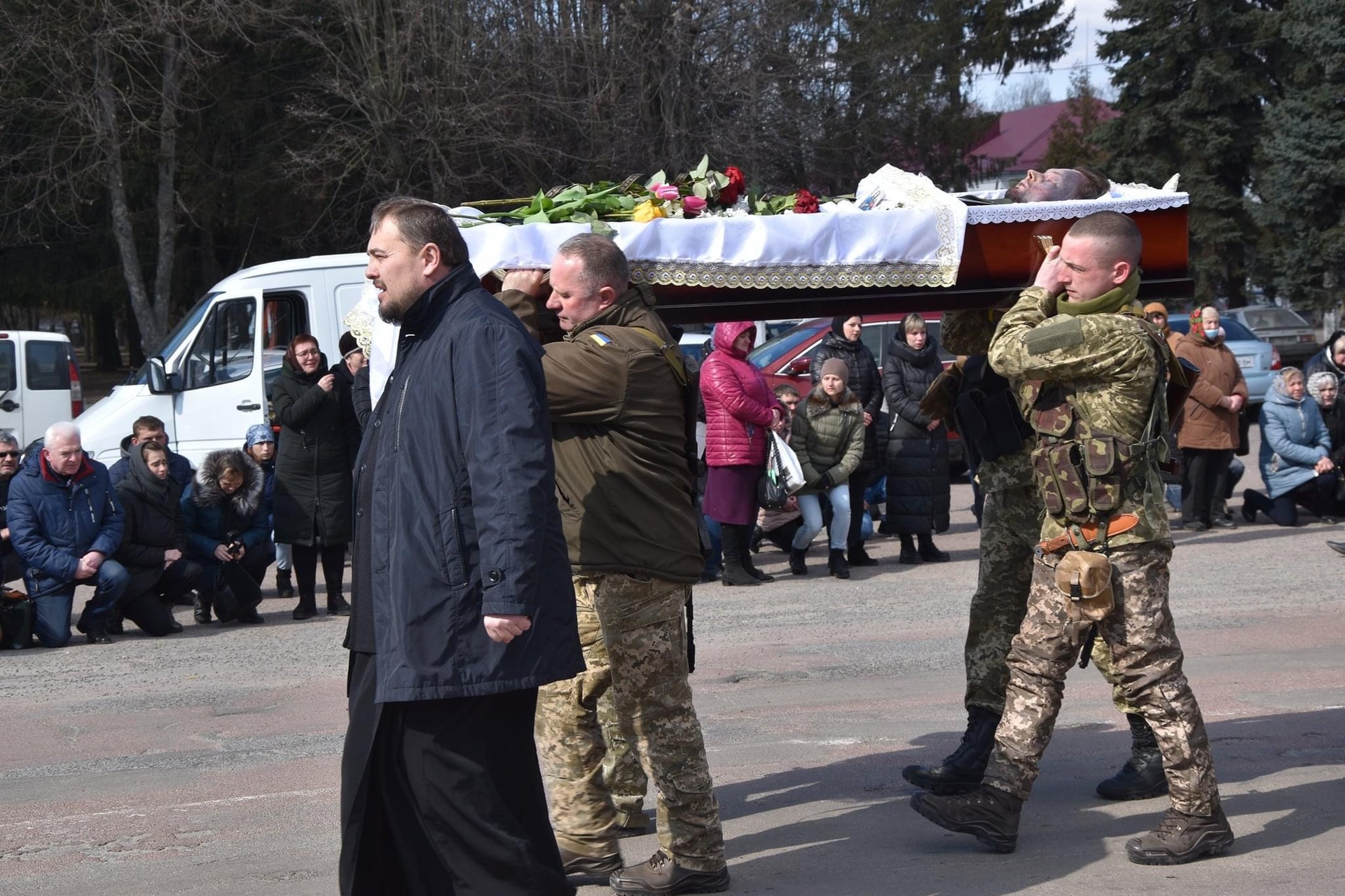 Плач згорьованої матері та дружини зливався з плачем жінок, які навколішках стояли понад шляхом поминальної колони.