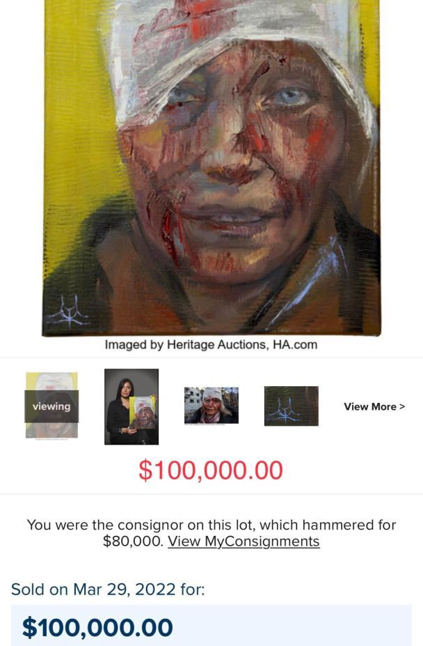 Вчора на найпрестижнішому американському аукціоні Heritage Auctions завершилися 10-денні онлайн- торги за право придбати портрет вчительки з Чугуєва, яка отримала поранення в результаті бомбардування окупантами, Олени Курило.