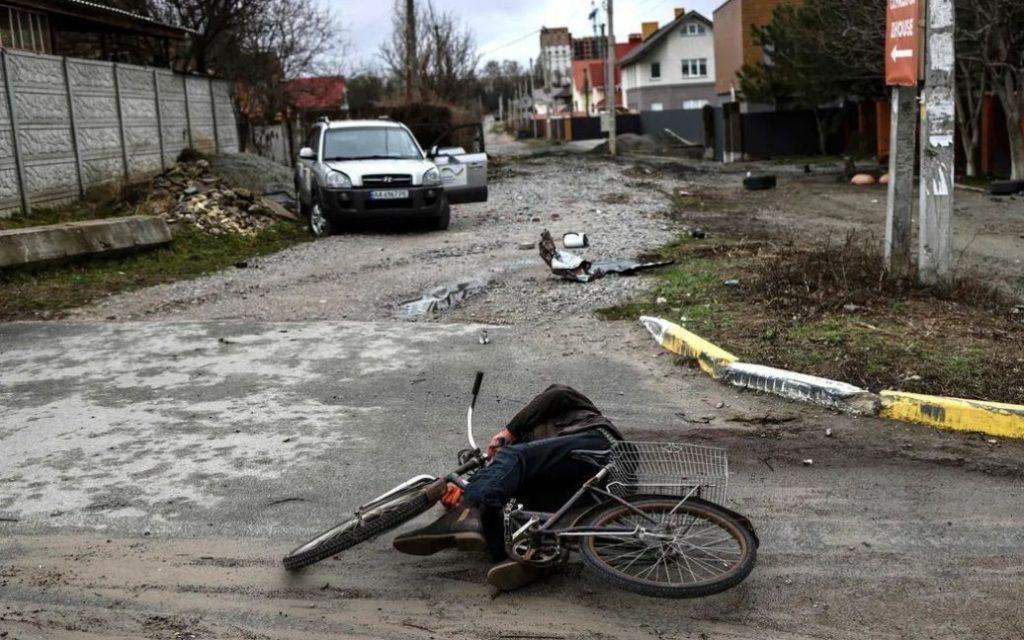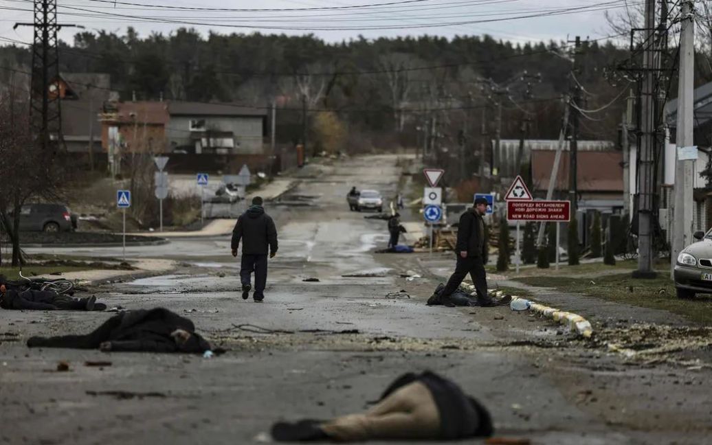 Він виклав фото звірств російських окупантів у Бучі, зроблені фотографами Vadim Ghirda, Ronaldo Schemidt, УНІАН.
