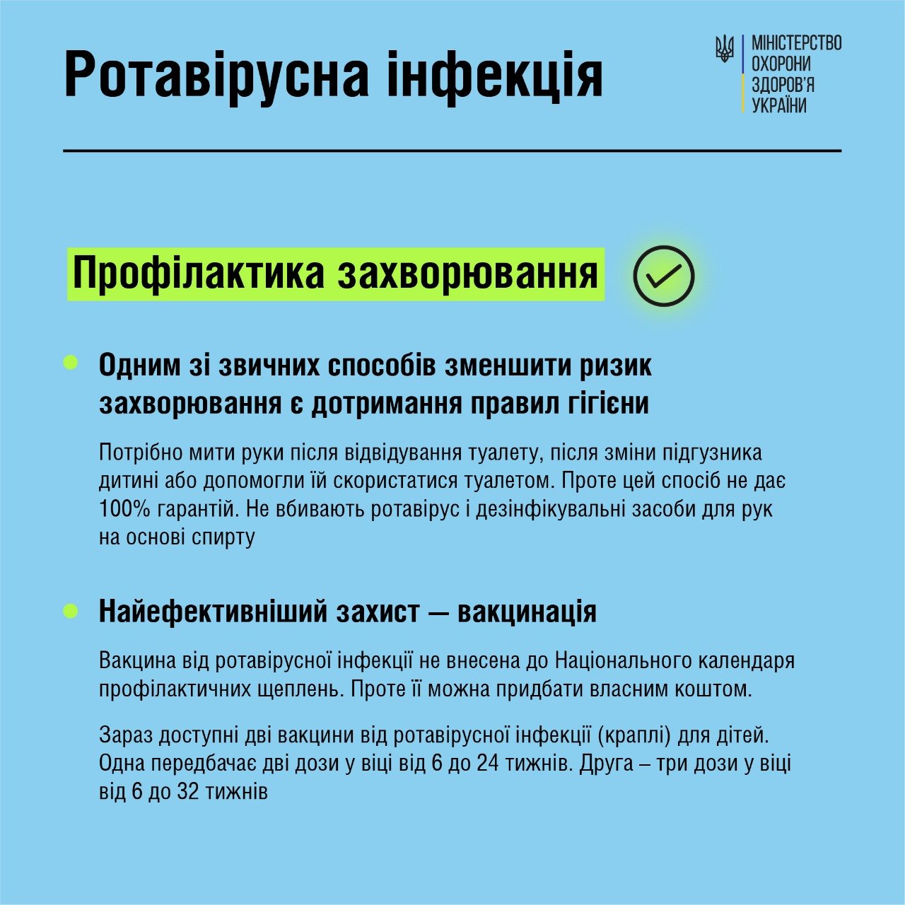 У здорових дорослих ротавірусна інфекція може мати лише легкі прояви та симптоми або не мати їх взагалі. Проте для немовлят і дітей раннього віку це захворювання є небезпечним через ризик швидкого зневоднення”,- ідеться у повідомленні.