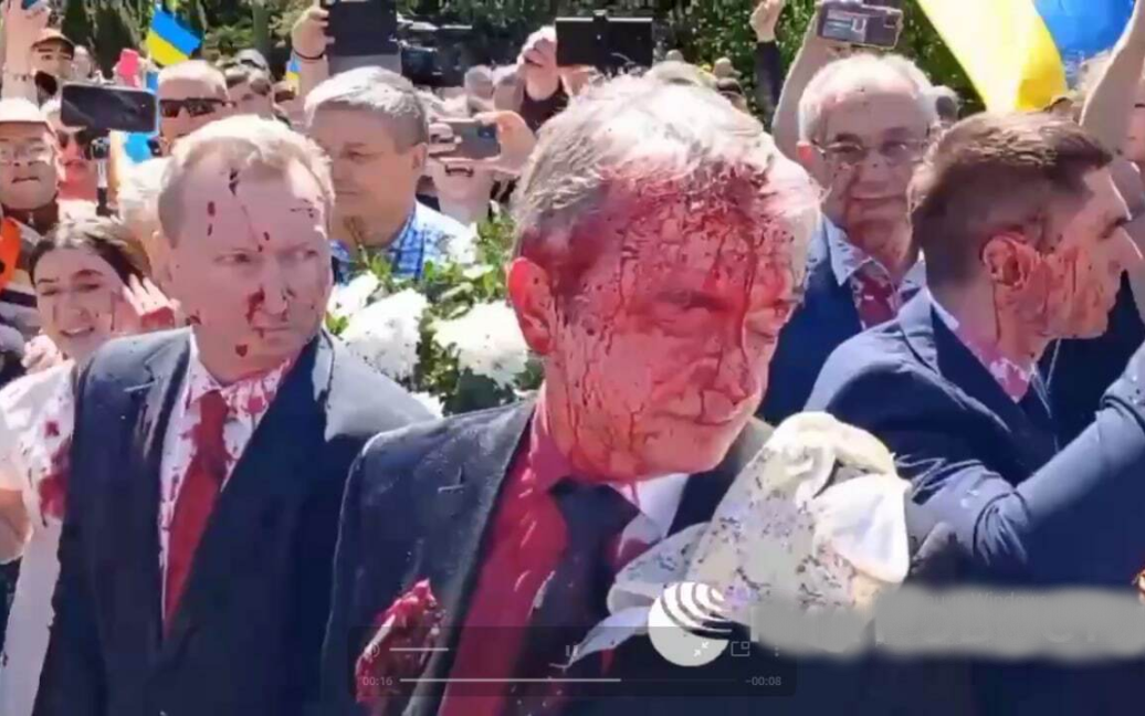 Посла РФ у Польщі облили червоною фарбою і закидали трусами (відео)