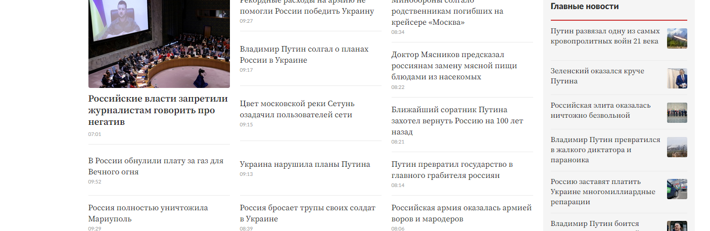 Як інформує “УП” з посиланням на “Медіазона”, на головній сторінці одного з відомих пропагандистських видань Росії “Лента.ру” з’явилося низка матеріалів із критикою президента Росії Володимира Путіна, який напав на Україну