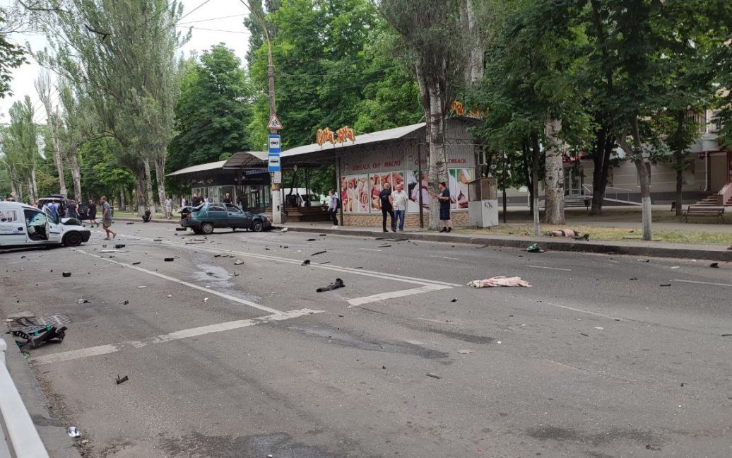 Внаслідок аварії двоє людей загинули, ще чотирьох “швидка допомога” доправила до лікарні. Очевидці повідомляють, що винуватці ДТП – російські військові.