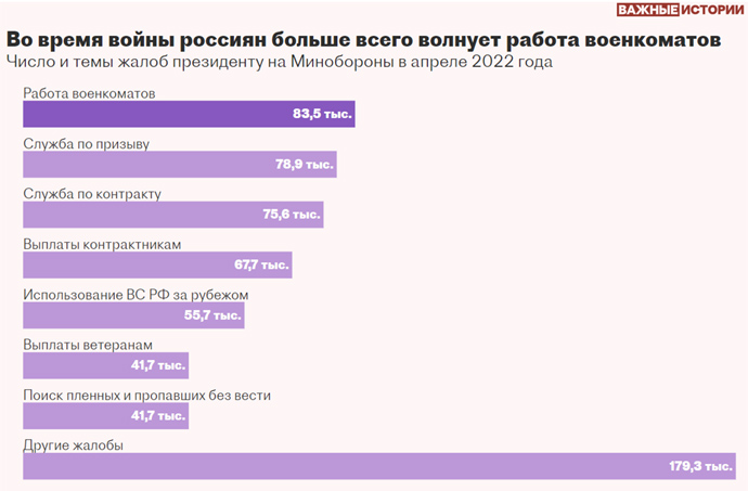 Згідно з аналізом даних скарг на Міноборони РФ з 2016 року Адміністрація президента відповіла лише на 3% від загальної кількості. Більше того, Путіну не повідомляють про ці скарги – бояться.