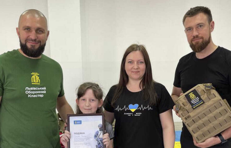 “Ми знали, що у Львові є ЛОК — Львівський Оборонний Кластер, що виготовляє бронежилети і безкоштовно передає їх захисникам України. Прочитали, що для виготовлення одного бронежилета потрібно понад 5 тисяч гривень. Тож Соломійка вирішила зібрати бодай на один бронежилет”, — розповідає мама дівчинки Лілія Галан, яка є волонтеркою та піклується про діток-сиріт та діток з особливими потребами.