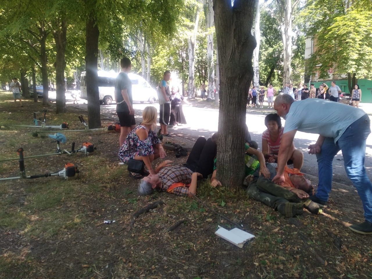 За попередньою інформацією, водій BMW на високій швидкості зім’яв кілька автівок, після чого виїхав на узбіччя і зніс комунальників, які косили траву.