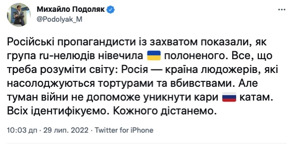 Михайло Подоляк відреагував на таке звірство над українським військовим: