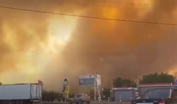 У місті Костянтинівськ Ростовської області, що біля українського кордону, вирує потужна степова пожежа.
