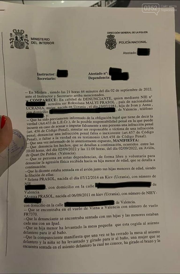 У підсумку мама дівчинки написала заяву до поліції. За словами Роксолани, коли її донька виходила до вбиральні на борту літака, то отримала від росіянки удар долонею у спину.
