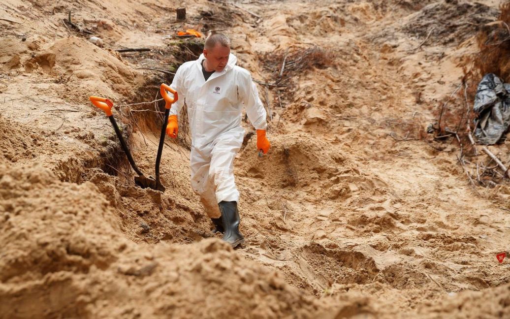 Голова Харківської ОВА Олег Синєгубов, який відвідав місце трагедії, в лісі під Ізюмом знайшли 450 тіл цивільних людей із слідами насильницької смерті. Серед тіл, які були ексгумовані сьогодні, 99% з ознаками насильницької смерті. На більшості могил навіть не вказані імена, а лише позначка з номером.