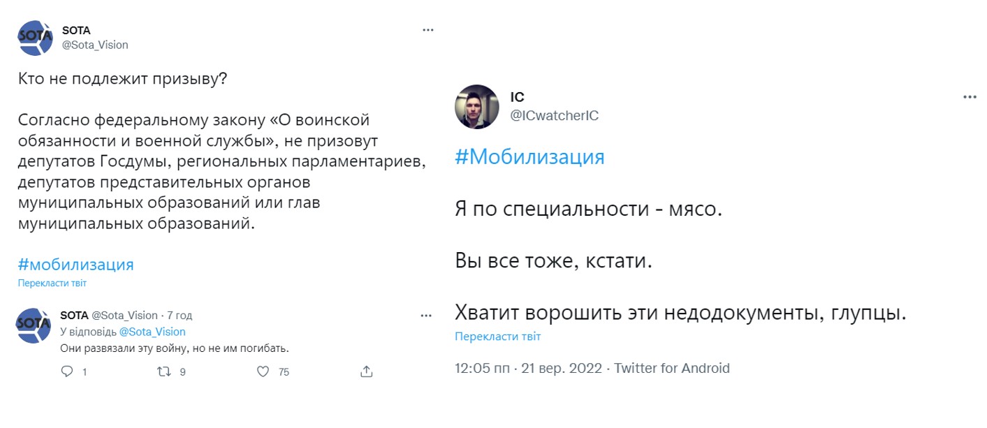 У Twitter росіяни обговорюють, хто підлягає і не підлягає мобілізації. Налаштовані песимістично