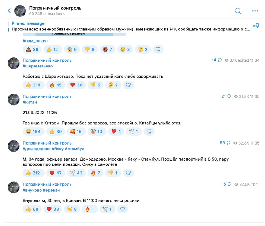 У соцмережах росіяни діляться досвідом, кому і де вдалося перетнути кордон. Впродовж ранку у такому обговоренні з’явилися кількадесят дописів від чоловіків «у запасі», які вдало сіли на літак. Участь в обговоренні ситуації на пропускних пунктах брали навіть самі прикордонники.