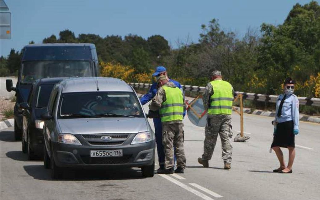 З’їзд з автотраси “Таврида” поблизу окупованого росіянами Севастополя патрулюють посилені наряди російських поліцейських та військових з автоматами.
