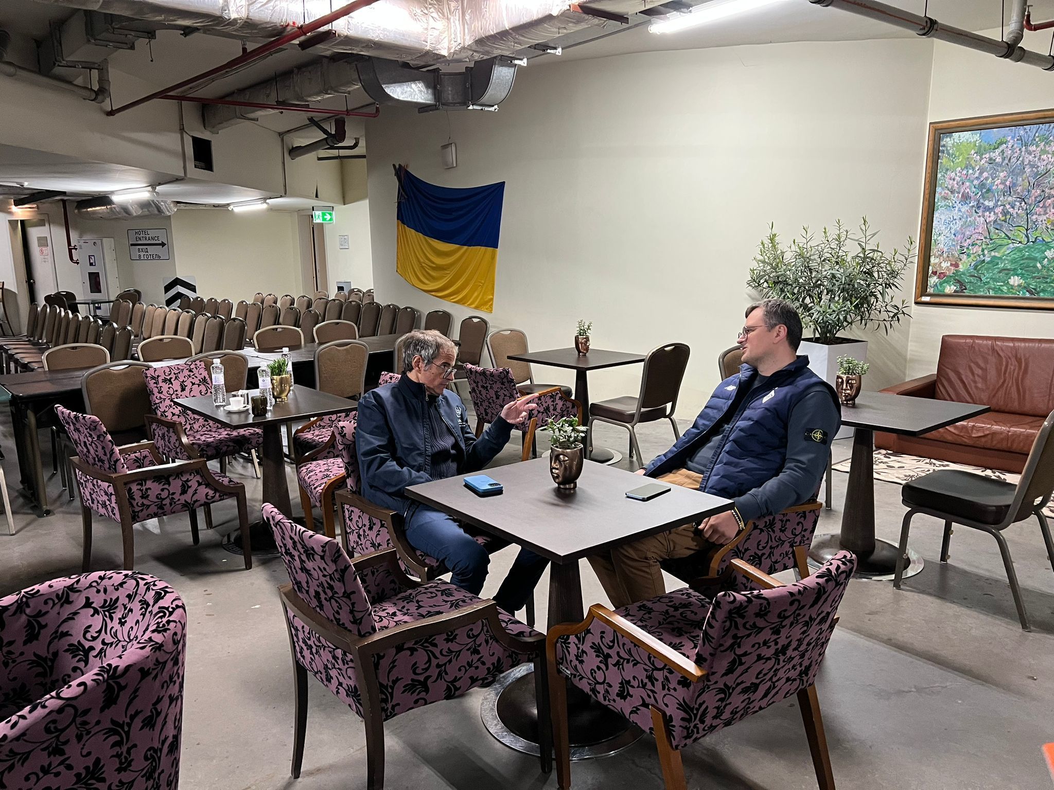 “У київському бункері з міністром закордонних справ України Дмитром Кулебою досягаємо прогресу у створенні зони ядерної безпеки та захисту навколо Запорізької АЕС”, – написав він у підписах до знімків.