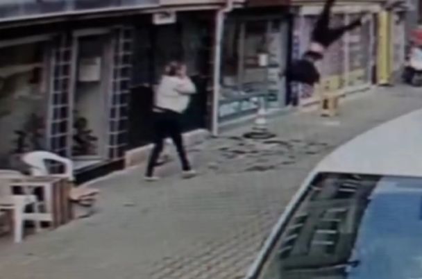 Нещасний випадок зафіксували камерами відеоспостереження у сусідніх будинках. Спершу на землю впав телефон, після чого на тротуар упала його власниця.