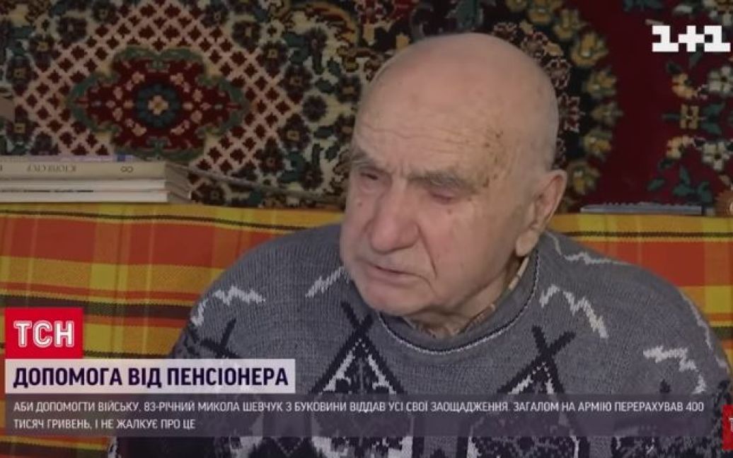 400 тисяч гривень віддав для військових 83-річний пенсіонер з Буковини. Дідусь заощаджував кошти усе життя, економив, та коли почалася велика війна, без вагань вирішив допомогти тим, чим може. За такий вчинок президент нагородив чоловіка відзнакою «За заслуги», йдеться в ТСН.