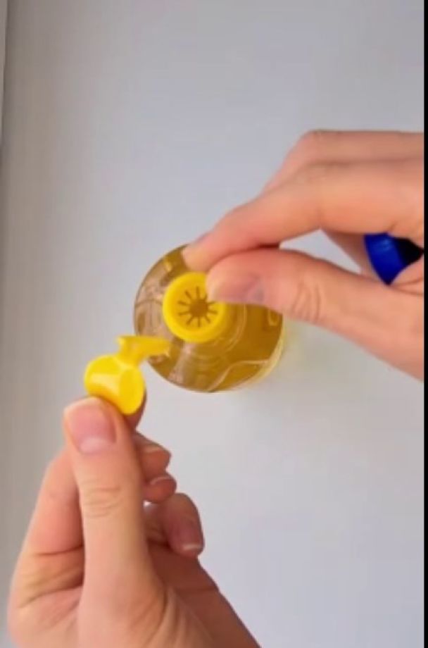 Потрібно правильно використовувати кільце в пляшці для олії, яке 90% споживачів викидає у смітник. Хоча саме ця частина є найважливішою у кришці, саме це кільце може стати дозатором та зекономити олію.