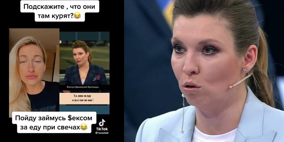 На відео, що його поширюють соцмережі, ми бачимо уривок із її вечірньої програми на одному з центральних каналів РФ.