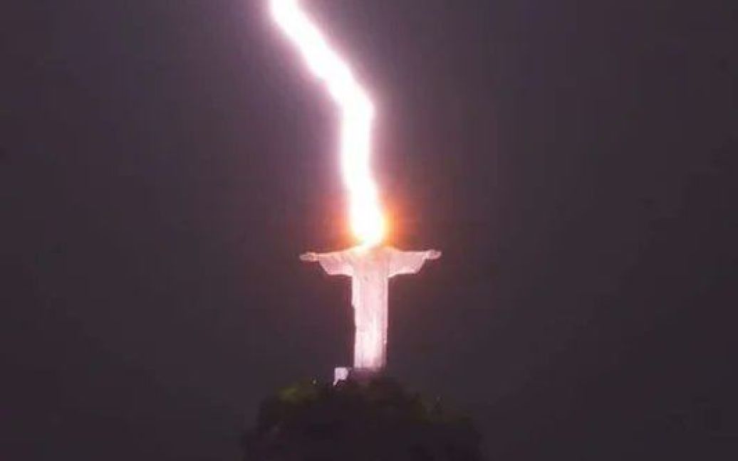 В Ріо-де-Жанейро, Бразилія, ввечері 10 лютого блискавка влучила у статую Христа-Спасителя.