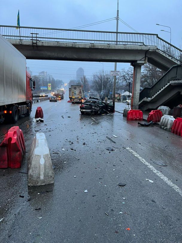 У Києві вантажівка розчавила легковик та врізалася в фуру.
