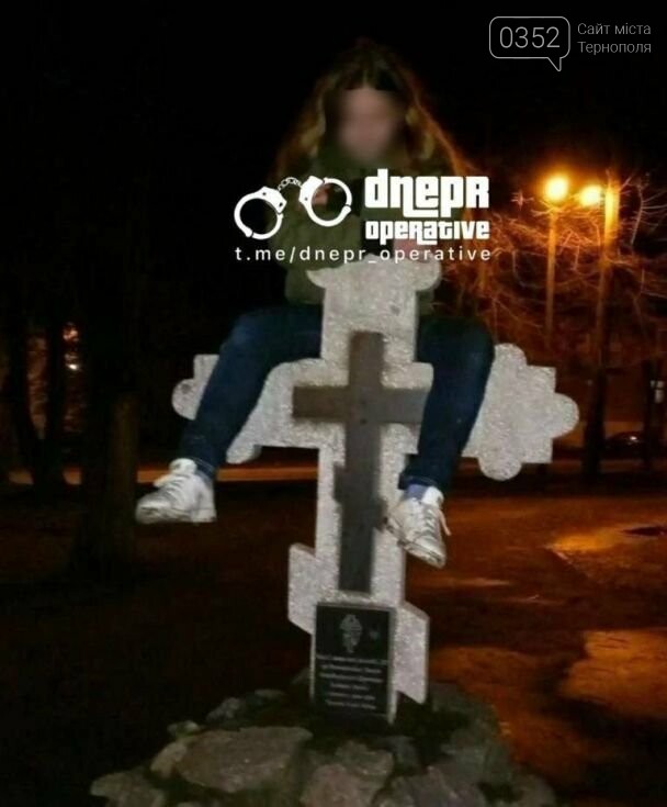 Як повідомляє Telegram-канал “Дніпро Оперативний”, поліція встановила особу неповнолітньої хуліганки.Батьків дівчини, яка фотографувалася, сидячи на хресті, поліцейські Дніпропетровщини притягли до адміністративної відповідальності. Щодо них складено протокол за ст. 184 КУпАП (невиконання батьками або особами, що їх замінюють, обов’язків щодо виховання дітей).