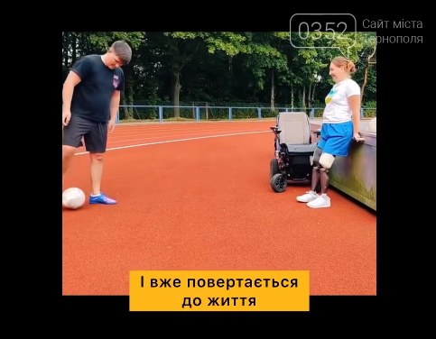 Медсестра з Лисичанська Оксана Баландіна, яка втратила обидві ноги, наступивши на ворожу міну, вже робить перші кроки за допомогою протезів і навіть пробує грати із коханим чоловіком у футбол.