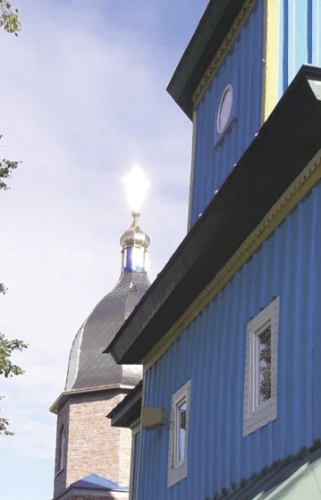 Першим його побачив церковний староста Володимир Семенюк. Чоловік ішов на Божественну літургію й по-хазяйськи глянув на новозбудовану дзвіничку. Кілька тижнів тому над нею встановили купол. У мить, коли на нього підвів очі пан Володимир, хрест, здавалося, благодатно потопав у золотому сяйві, яке сам і випромінював.