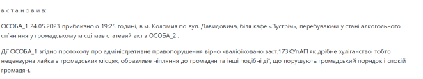 Про це йдеться у постанові Коломийського міськрайонного суду.