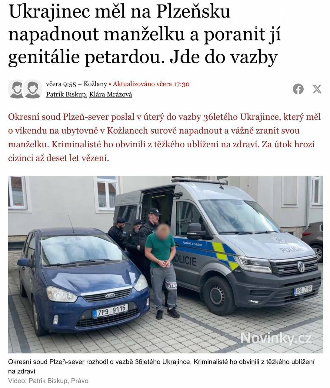 Українець на фоні ревнощів напав на свою дружину спочатку він побив її, а потім вставив петарду у її інтимне місто та підпалив. Чоловік сам відвіз жінку до лікарні. Потерпіла у тяжкому стані. Про це повідомляє чеське видання Novinky, пише УНН.