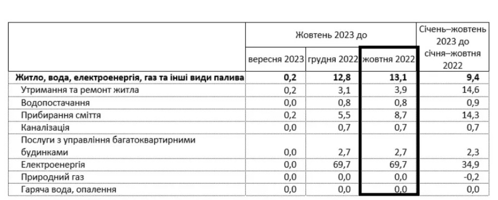 В Україні протягом року зросли тарифи на комуналку. Житлово-комунальні послуги з жовтня 2022 року до жовтня 2023 року подорожчали на 13,1%.