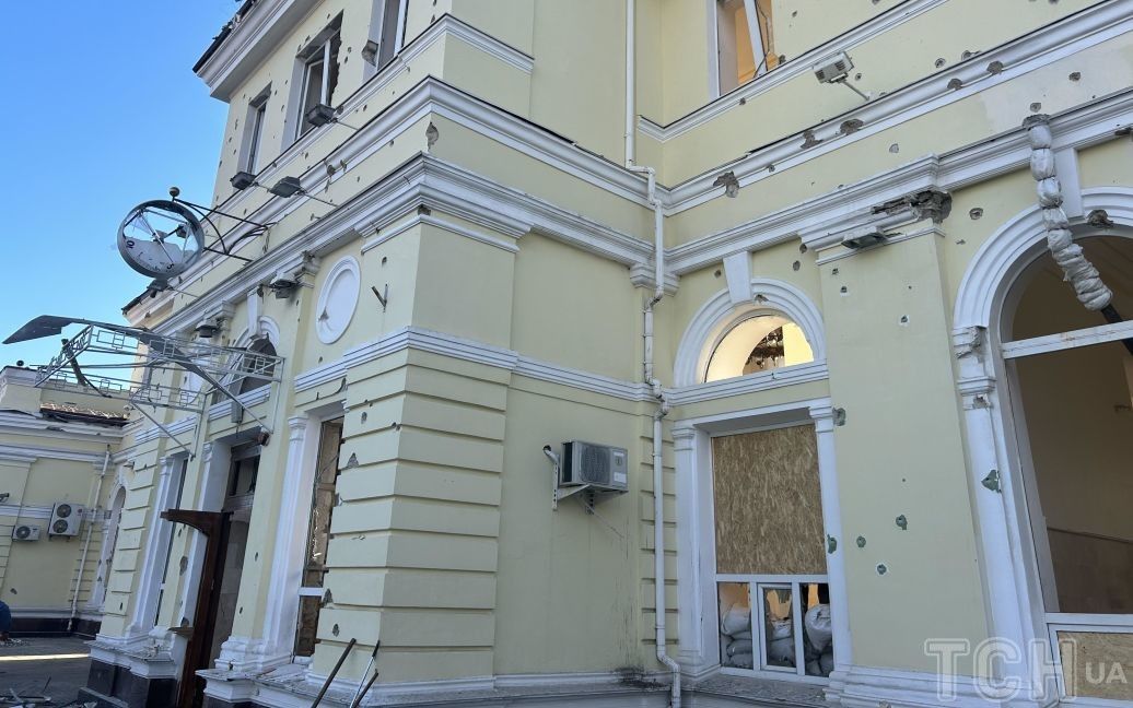 “Вокзал зазнав серйозних руйнувань – у приміщеннях немає жодного вікна, також частково зруйновано стіни та покрівлю. Крім вокзалу ще пошкоджені вагони потягів, три приватні будинки, територію бази, готель, магазин. Зараз у приміщенні вокзалу тривають першочергові відновлювальні роботи. Про повноцінну відбудову можна буде говорити після припинення обстрілів. Але вокзал працює, пасажири можуть очікувати на прибуття потягів в укритті”, – розповів Прокудін.