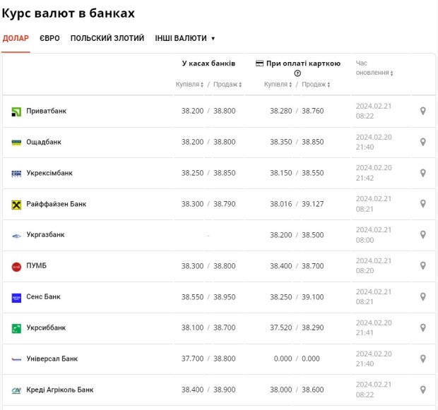 Валютні курси, що встановлені Національним банком України на сьогодні, 21 лютого, мають наступні показники: курс долара США зараз дорівнює 38,4756 гривень за 1 долар. Курс євро наразі складає 41,5421 гривень за 1 євро.