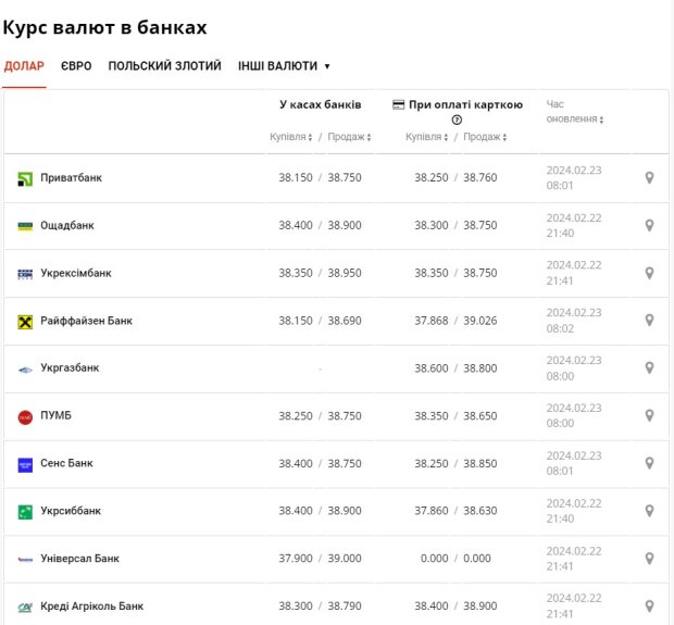 Валютні курси, що встановлені Національним банком України на сьогодні, 23 лютого, мають наступні показники: курс долара США зараз дорівнює 38,4803 гривень за 1 долар. Курс євро наразі складає 41,728 гривень за 1 євро.