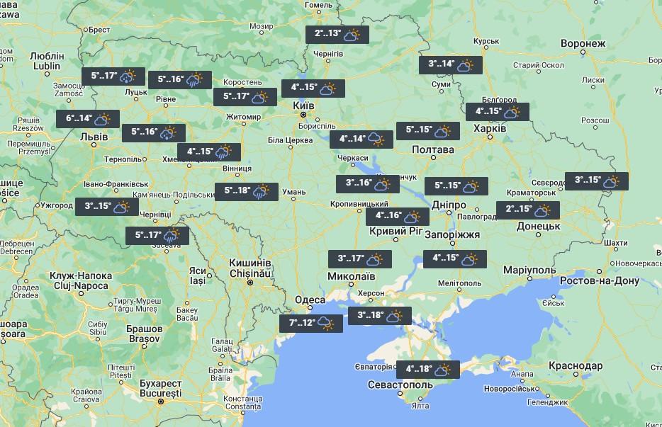 У Харкові – невелика хмарність, температура вночі +4°, вдень +15°.
