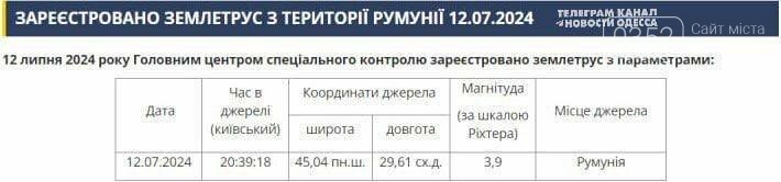 У Головному центрі спеціального контролю нагадали, що останній потужний землетрус з території Румунії був зареєстрований 22 травня 2024 року з магнітудою 4,2 (за шкалою Ріхтера).