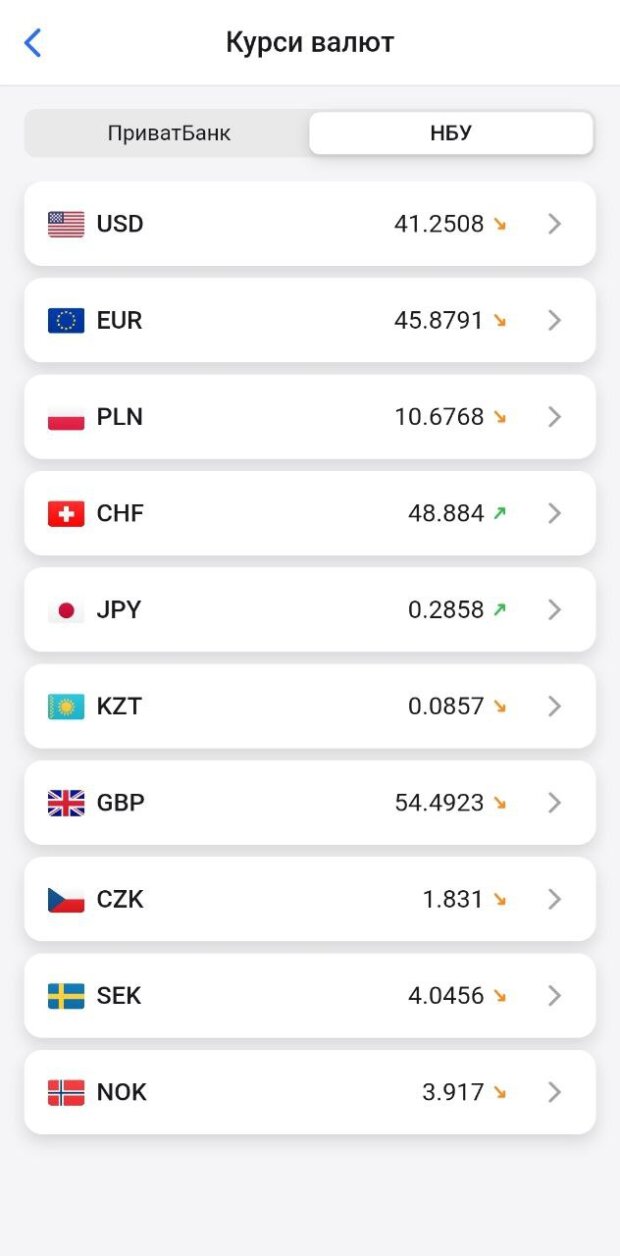 Офіційний курс на 29 серпня 2024 року встановлено на такому рівні: 41,2508 грн за 1 долар (-0,0500 грн).